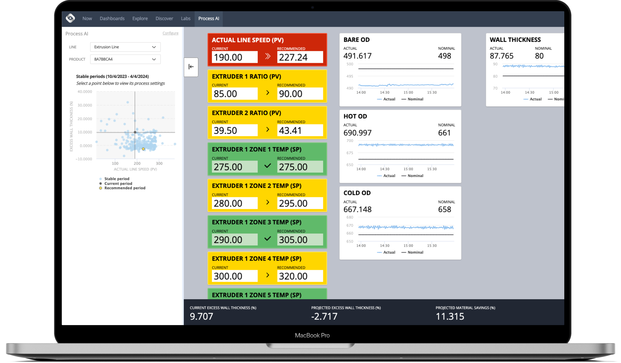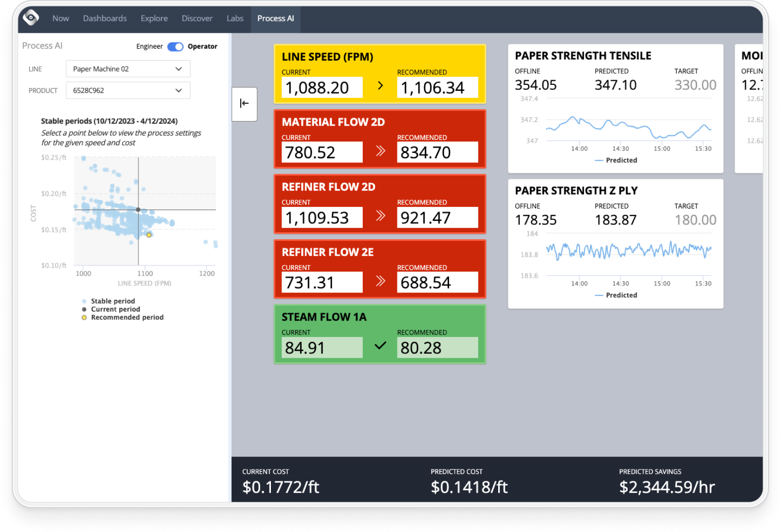 Process AI provides the information operators need to be high performers, in real-time, on the plant floor. It delivers process setting recommendations directly to operators to optimize every run, whether the goal is to increase speed, reduce costs, or improve quality (or a combination of all three!)